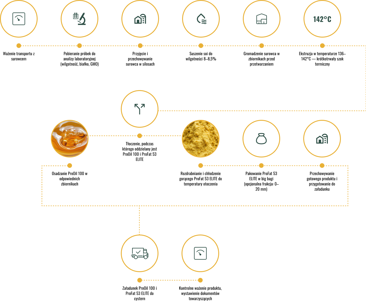 Na każdym etapie produkcji przeprowadzamy szczegółową kontrolę jakości surowców i produktów gotowych. Wszystkie procesy spełniają wymogi bezpieczeństwa pasz, w tym analizy wilgotności, zawartości białka i wskaźników GMO. Przestrzegamy zasad identyfikowalności i odpowiedzialności wobec partnerów.